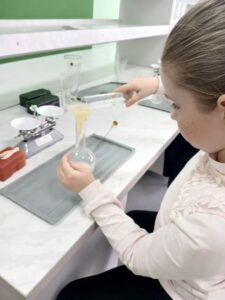Сегодня, ученики 3 класса, на очередном занятии по программе «Удивительное рядом» научились самостоятельно готовить растворы с заданной концентрацией. Познакомились с составом раствора: растворитель и растворенное вещество, с понятием- концентрация раствора. Приготовили раствор соли. Закрепили умение работы с рычажными весами, отмеряли нужное количество воды мерным цилиндром. Работали быстро, четко, с интересом. Выяснили, что данные умения пригодятся при приготовлении растворов минеральных удобрений, для внесения в почву весной, перед посадкой картофеля.