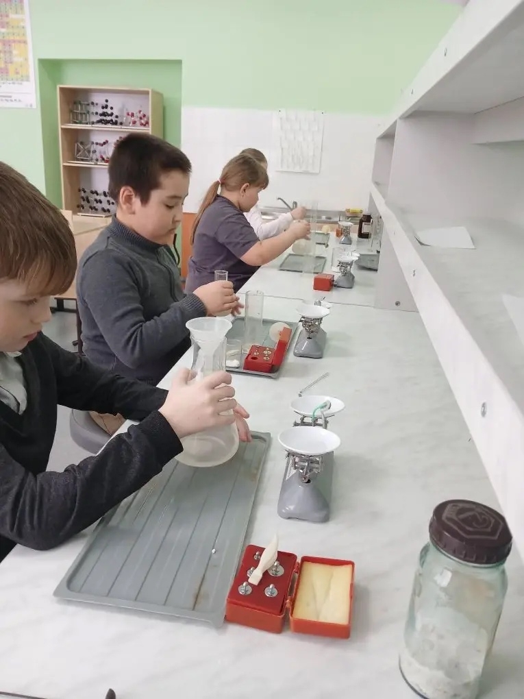 Сегодня, ученики 3 класса, на очередном занятии по программе «Удивительное рядом» научились самостоятельно готовить растворы с заданной концентрацией. Познакомились с составом раствора: растворитель и растворенное вещество, с понятием- концентрация раствора. Приготовили раствор соли. Закрепили умение работы с рычажными весами, отмеряли нужное количество воды мерным цилиндром. Работали быстро, четко, с интересом. Выяснили, что данные умения пригодятся при приготовлении растворов минеральных удобрений, для внесения в почву весной, перед посадкой картофеля.